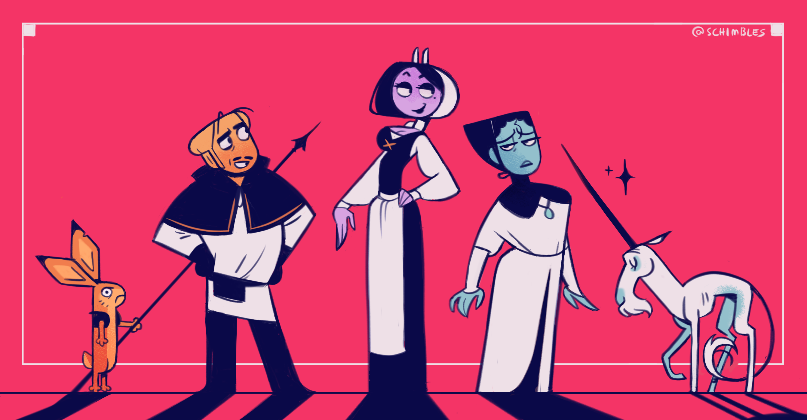 Exploration & design for an irreverent medieval story.
