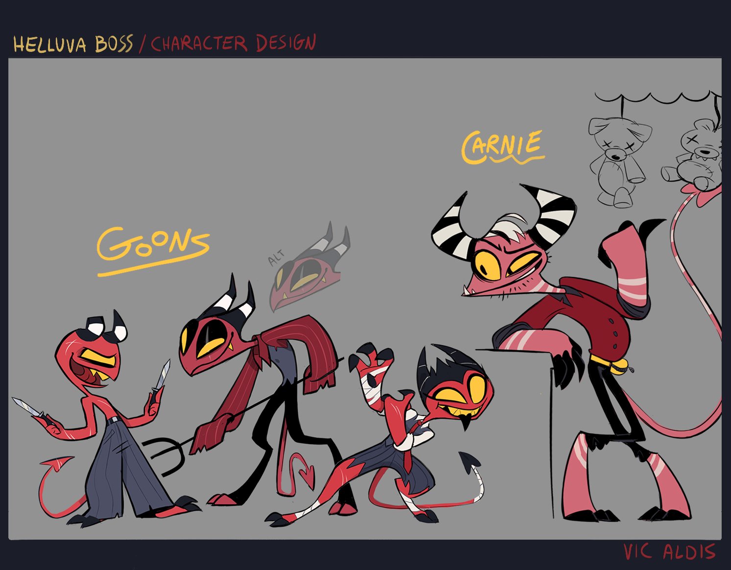 Assorted minor character designs for Season 1 of Helluva Boss.